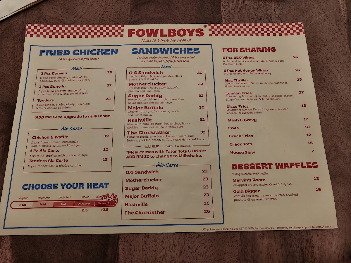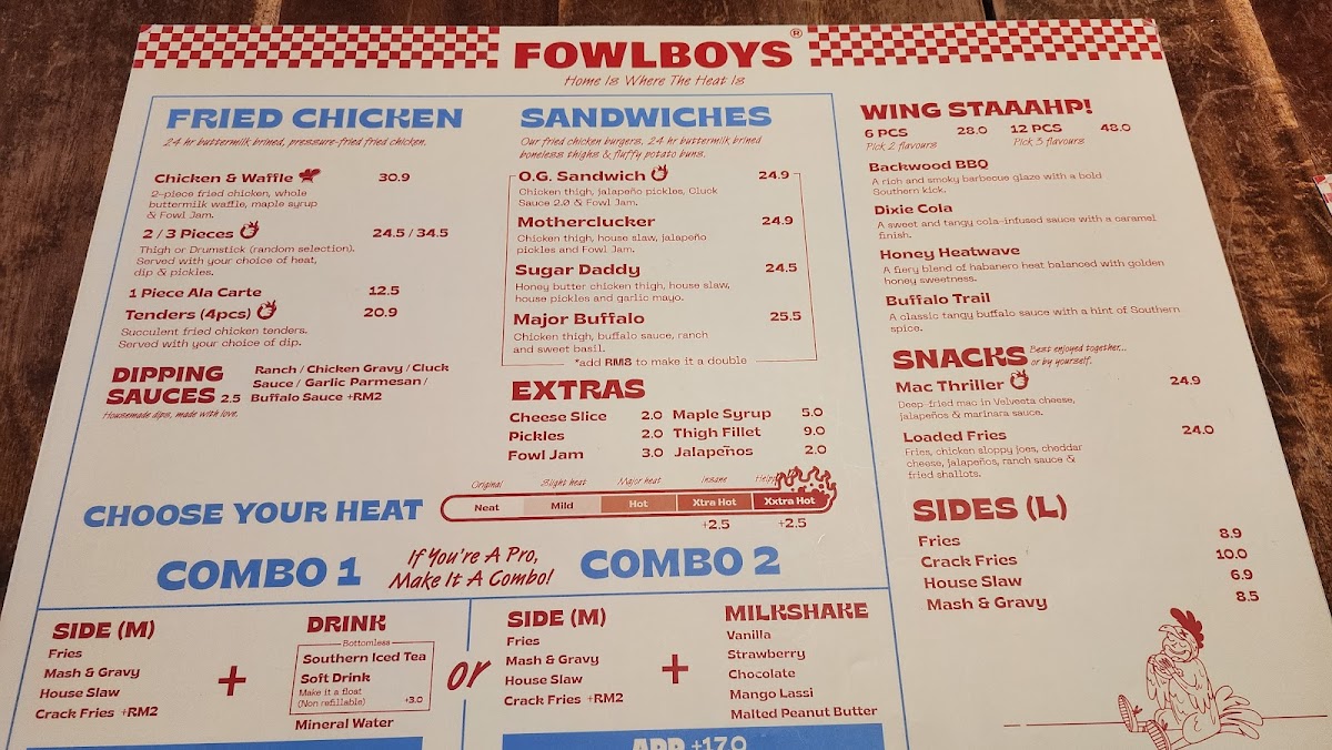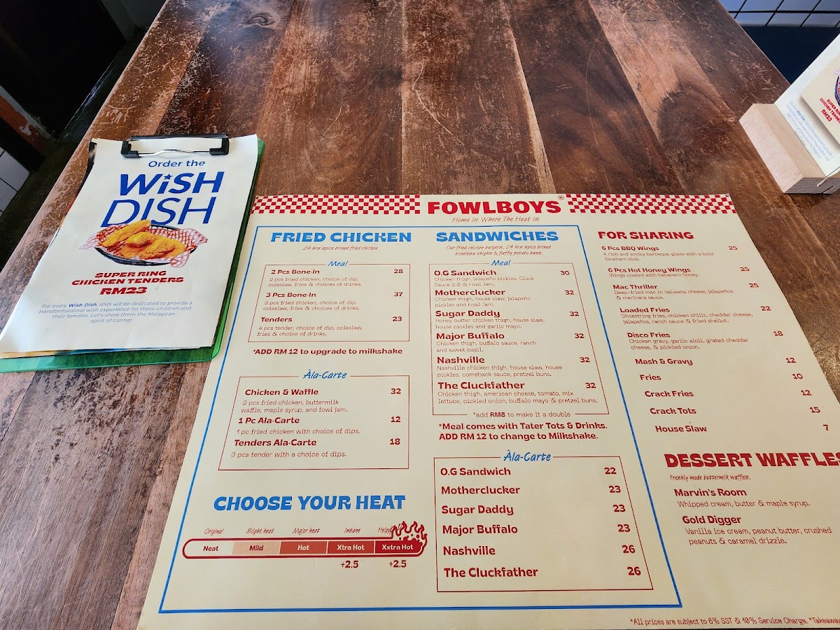 Located at 38, Jalan SS 15/4b in Subang Jaya, FOWLBOYS SS15 promises a delightful experience for fried chicken enthusiasts. The centerpiece of the menu is undoubtedly their crispy, flavorful chicken, which many have praised for its perfect cooking balance—crispy on the outside and tender inside.